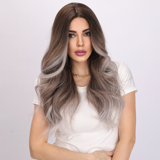 Elsie | Gray and Brown Gradient Wig | Deep Wave Wig | 24 inch Wig | TM Pop