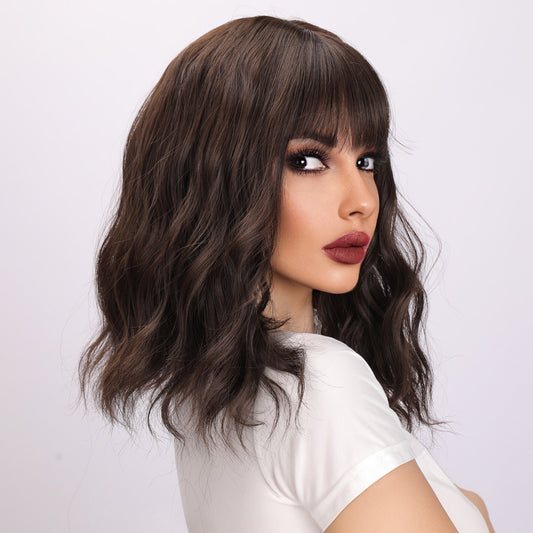 Evangeline | Brown Wig | Curly Bob Wig | 16 inch Wig | TM Pop