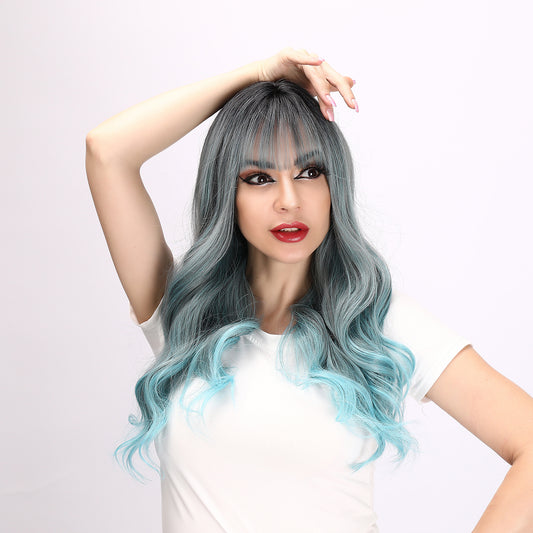 Noelle | Blue Ombre Wig | Deep Wave Wig | Curly Wig | 28 inch Wig | TM Pop